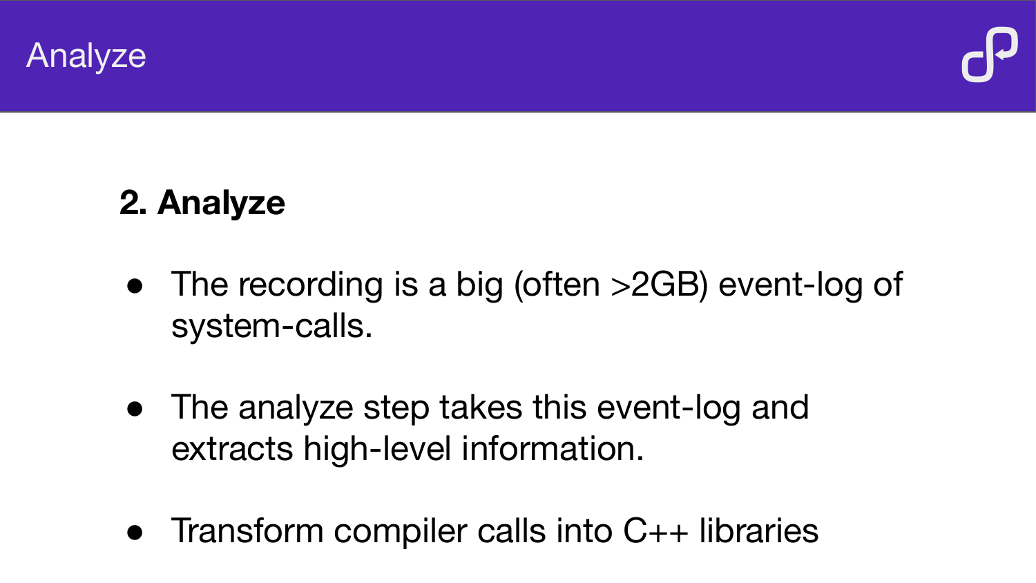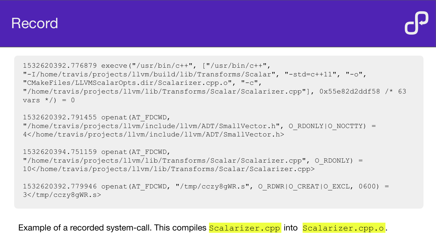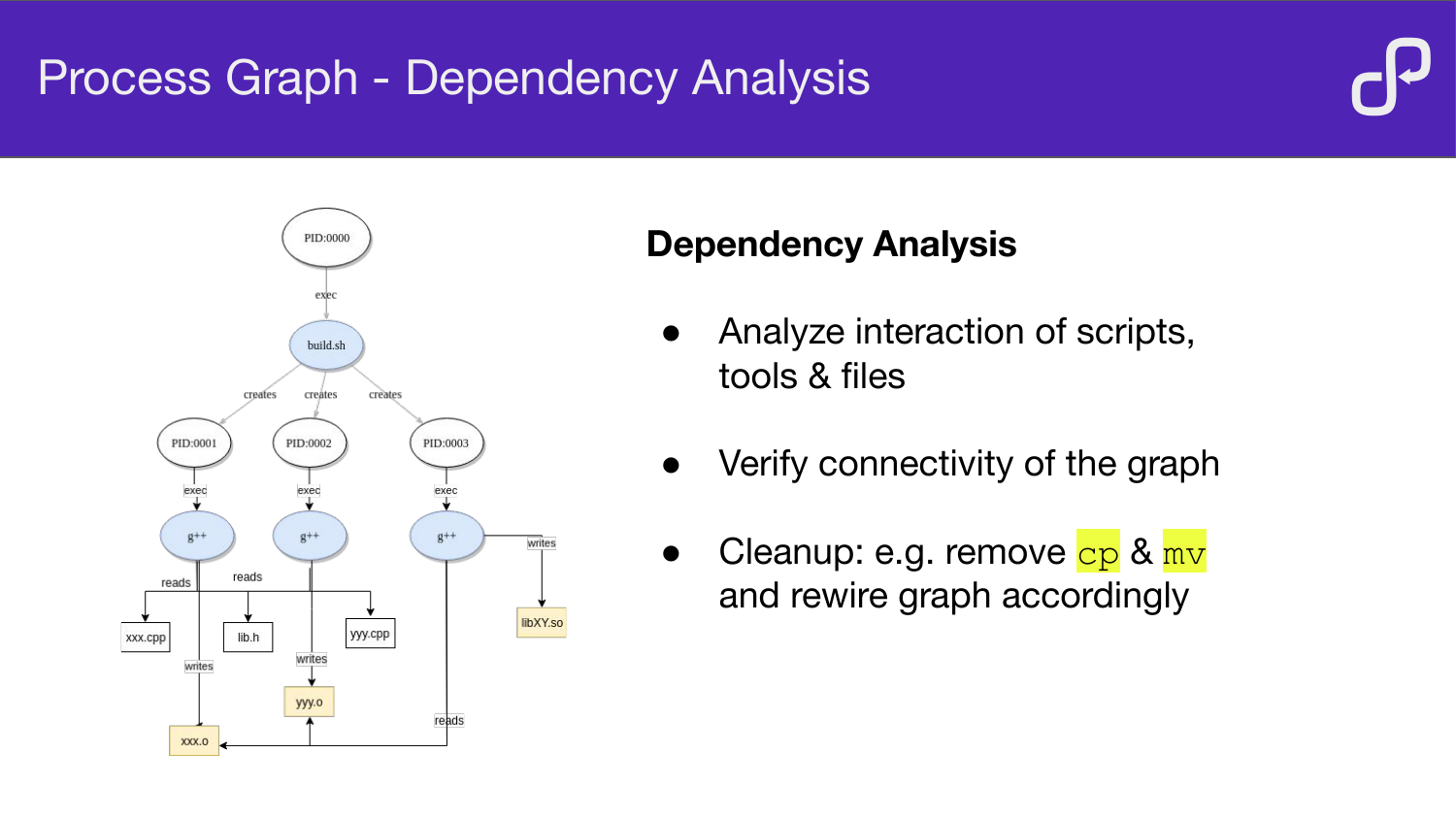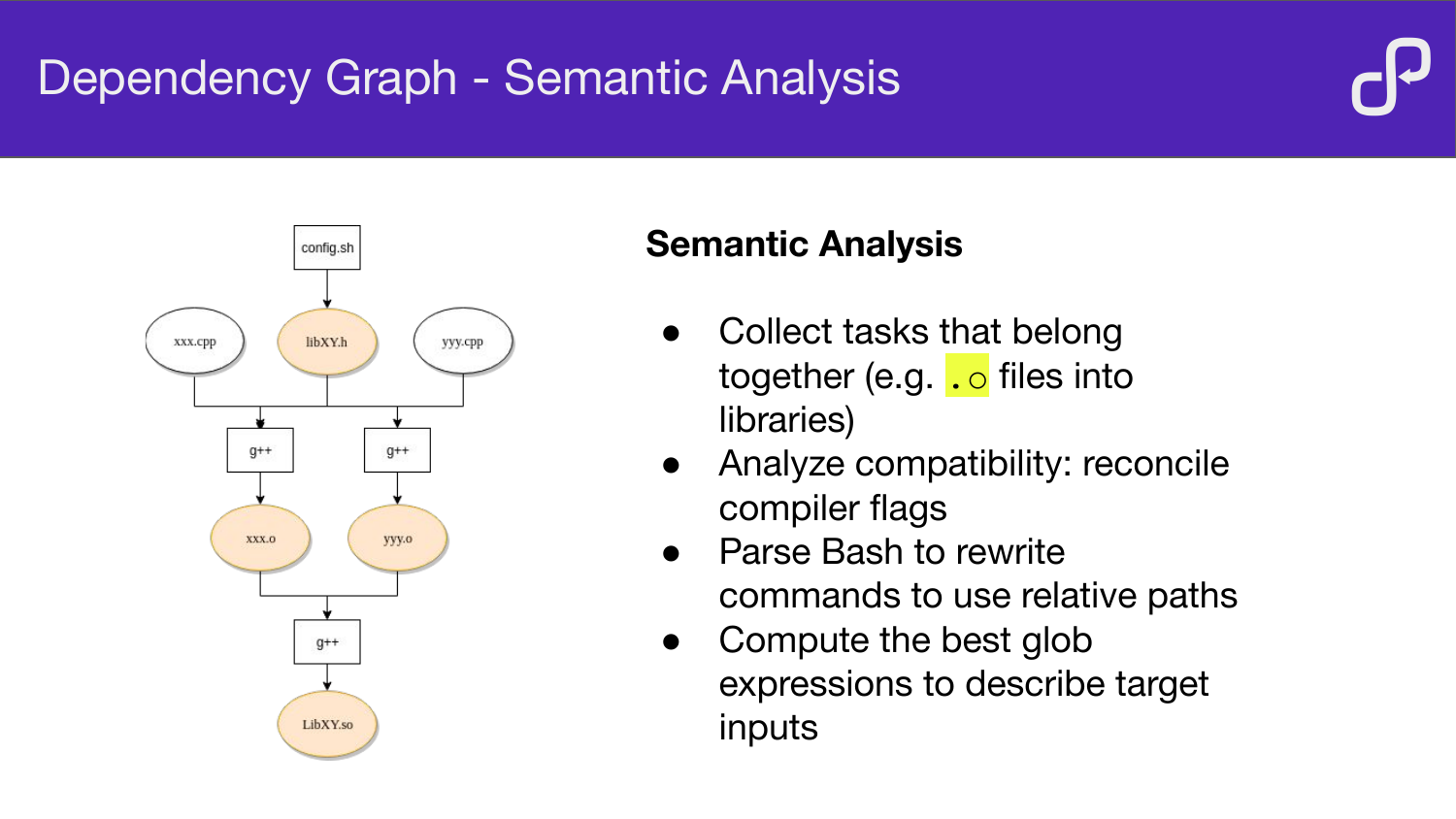 How BuildInfer uses ptrace to record system calls during a build, analyse the resulting event log, and automatically generate Buck or Bazel build files — demonstrated on LLVM, OpenCV, and Mapnik.